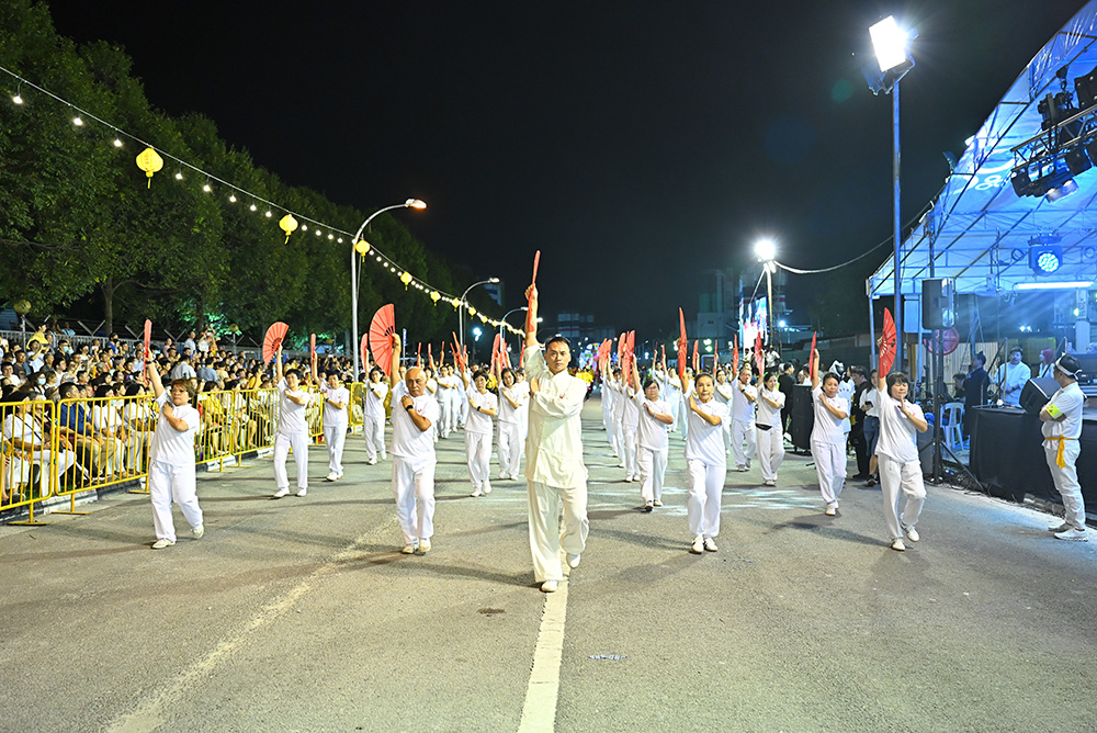 The evening was filled with vibrant performances and festive energy. In addition to the traditional rituals and getai (song stage) performances, students from our centre presented a Taiji Fan performance, showcasing the harmony of body and mind with graceful movements that captivated the audience.