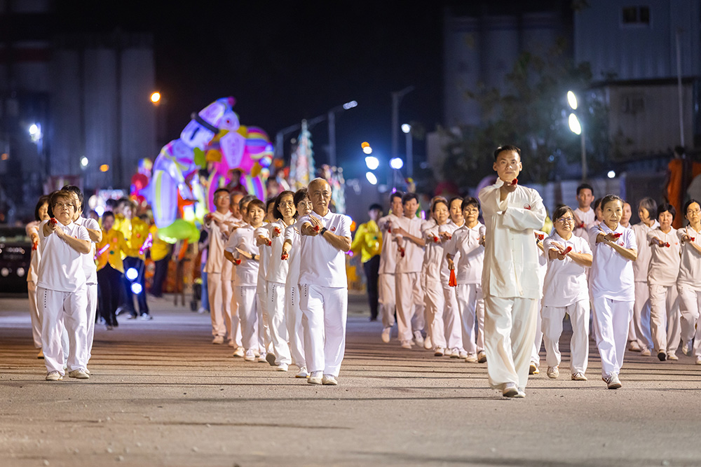 当晚气氛热烈,节目丰富多彩。除传统宗教仪式及歌台表演外,本院学员亦呈献太极扇表演,以柔和之势展现身心合一之美,赢得观众热烈掌声,为盛会增添祥和与文化气息。
