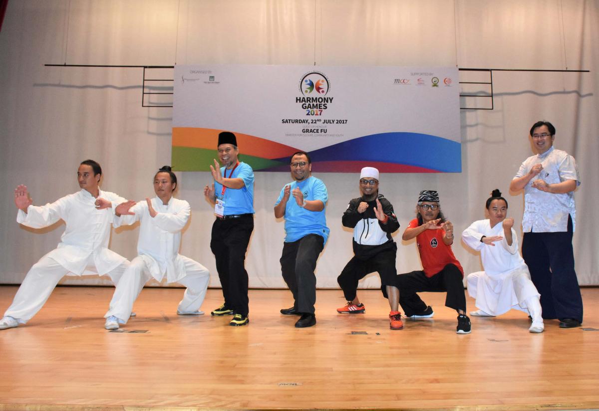 22.07.2017本院总教练、教练及助教带领武当三丰太极班第八期早班学员,参加和谐中心Harmony Centre主办的和谐游戏日Harmony Games Day活动,与马来团体一起打太极。地点在Beatty Secondary School 。